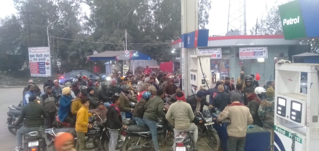 ट्रकों की हड़ताल से पेट्रोल पंप पर लगी पेट्रोल डीजल भराने वालों की भीड़